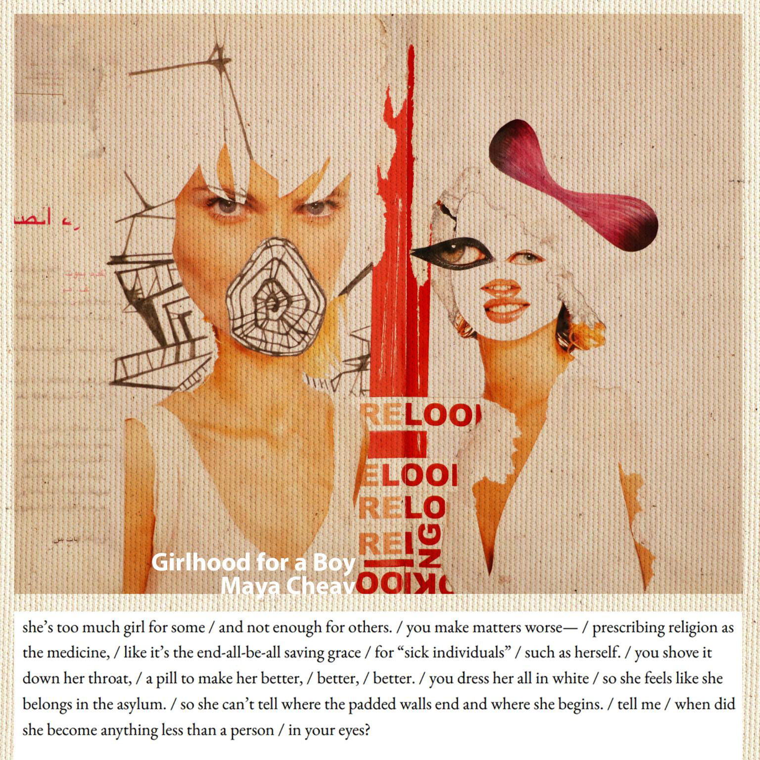 Below is a collaborative piece, made with Verse in Sylairyn featuring a collage and poem. The poem is titled, "girlhood for a boy."